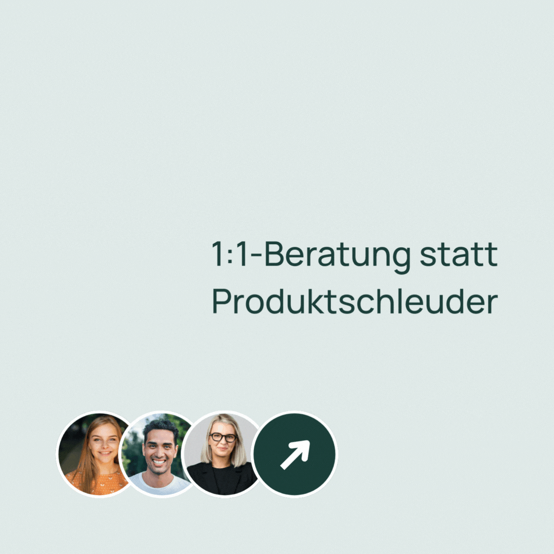 Egal ob du gerade erst anfängst oder endlich Klarheit in deine finanzielle Planung bringen willst. Gemeinsam entwickeln wir eine Lösung, die wirklich zu dir passt. Individuell, transparent und mit Plan.